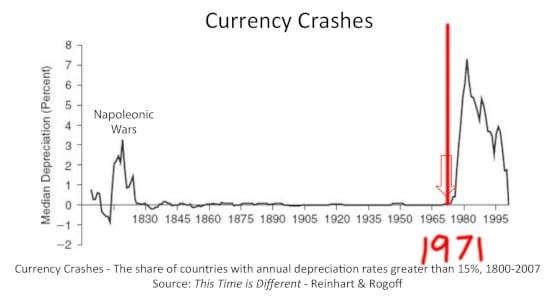 And, just like that, the move toward a completely fiat world reserve currency—a world that banksters, politicians, oligarchs and would-be emperors alike had lusted after for generations—was finally complete. The emperor had not only revealed he wasn’t wearing any clothes, he was also daring the public to do something about it.